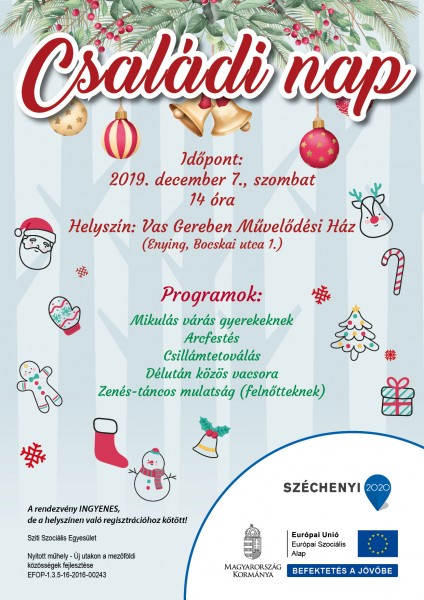 Családi napra várják az érdeklődőket 2019. december 7-én, 14 órától a Vas Gereben Művelődési Házban...