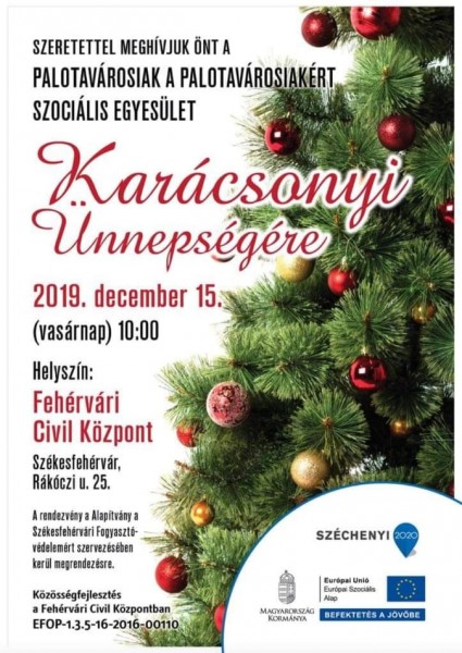 A Palotavárosiak a Palotavárosért Szociális Egyesület karácsonyi ünnepségre invitálja az érdeklődőket 2019. december 15-én 10 órától a Fehérvári Civil...